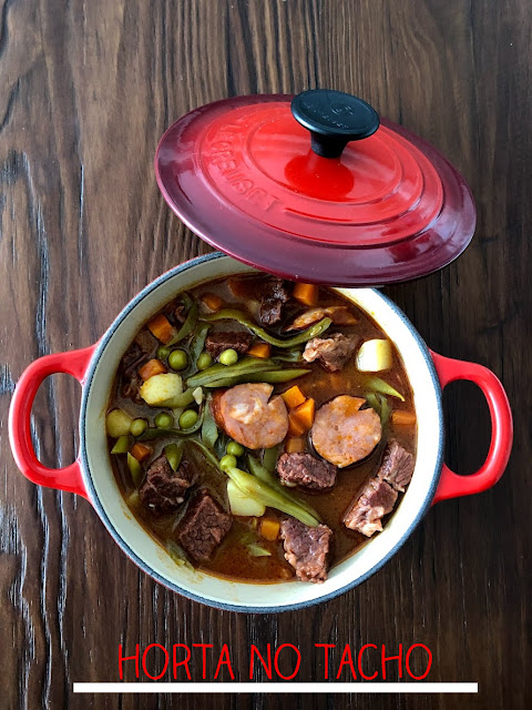 Comecei logo a cozinhar de véspera, para que o prato estivesse no ponto no dia seguinte. Que fiz eu? Uma saborosa Jardineira de Vitela! :)